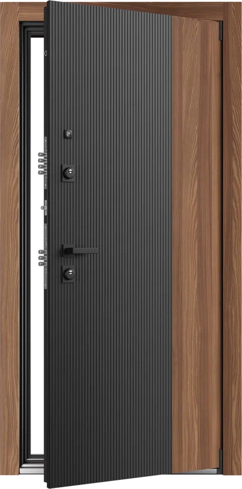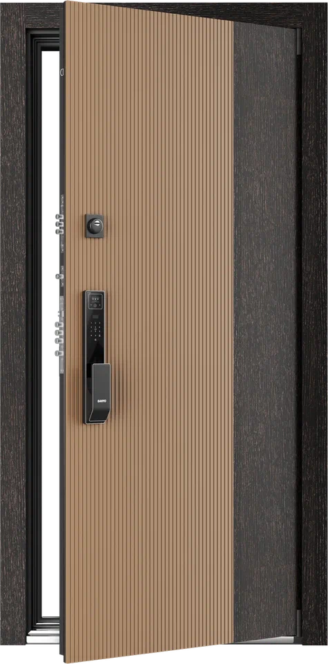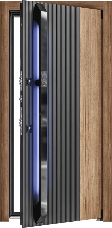 Входная SMART дверь из серии ELBRUS — безупречный синтез технологий и эстетики. Строгие линии, сдержанная геометрия и монолитная поверхность создают образ надежности и современного стиля. Уникальная ручка скоба BRIDGE с остеклением, удалённый контроль доступа, скрытые датчики и бесшовная интеграция панелей управления подчеркивают премиальный дизайн, где каждая деталь работает на вашу безопасность и комфорт.