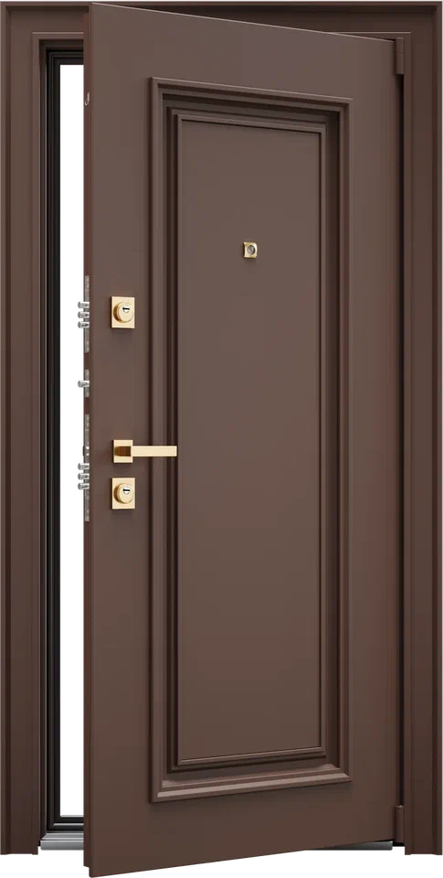 Дверная конструкция обладает максимальной энергоэффективностью, созданная для установки на границе тёплой зоны и холода. Ключевая особенность — наличие терморазрыва в полотне и коробке, а также многослойное утепление. Конструкция предотвращает образование наледи и предусматривает установку греющего кабеля. Ключевые преимущества: